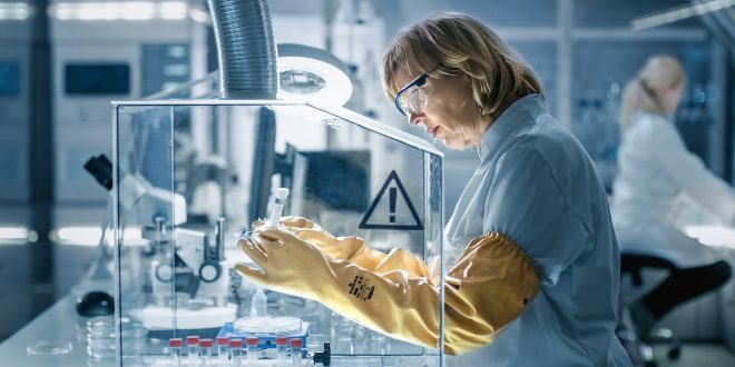 Aufgrund seiner chemischen und thermischen Eigenschaften eignet sich das weiche und flexible Material hervorragend für die Herstellung von Handschuhen. Da der elastomere Werkstoff durch Gamma- und Betastrahlung sterilisiert werden kann, werden Handschuhe aus CSM neben der Chemie auch in der Medizin, Pharmazie, Biologie und Nuklearindustrie verwendet. Dank ihrer niedrigen Luftdurchlässigkeit werden Handschuhe aus CSM auch für Isolator- und Gloveboxen produziert. Handschuhe für Gloveboxen werden hauptsächlich in weiß angeboten, damit sind Verschmutzungen leichter erkennbar.